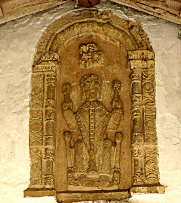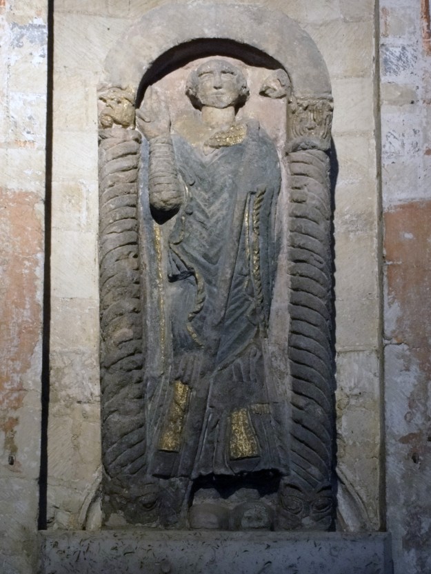 It has been suggested that the Norwich statue is a copy of an original piece from St. Felix’s shrine. It certainly looks the part, but nothing remains of the abbey, save for the gatehouse, and we are left with no clues. Relief sculptures from the minster at Breedon on the Hill, have survived to find a place in the church that replaced it. They have similar Roman arches framing their saints.