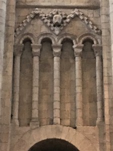 As if to emphasise his links to East Anglia’s past, the Bishop’s Entrance in the North Transept of the cathedral was deliberately built in an old fashioned Saxon style, with triangular headed arches, three beastly heads (reminiscent of the beasts at Deerhurst) jutting into the building; and a doorway with a plain, undecorated arch.