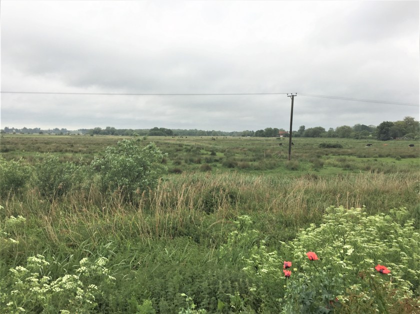 It was good to be in the calm of Langley Dyke after the blow and wet or the trip from Loddon. The moorings are sheltered behind a stand of trees full of raucous rooks and give a view across marsh land.