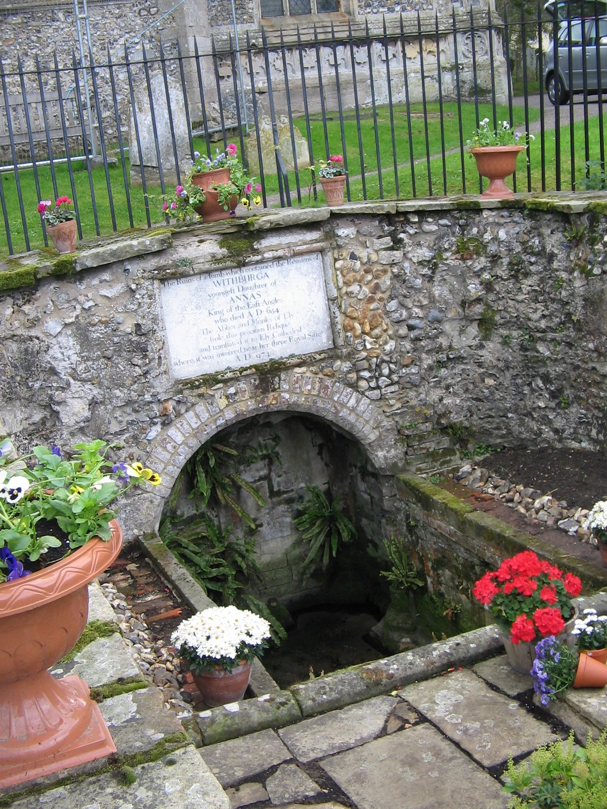 Monks from Ely came and dug up Withburga’s body in 794. In order to enshrine her body next to her saintly sister who had founded what is now Ely Cathedral as a monastery. No sooner had the theft been done that a miraculous spring welled up in the churchyard and can still be seen today.