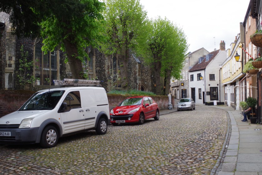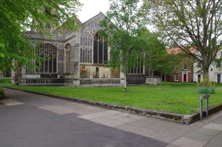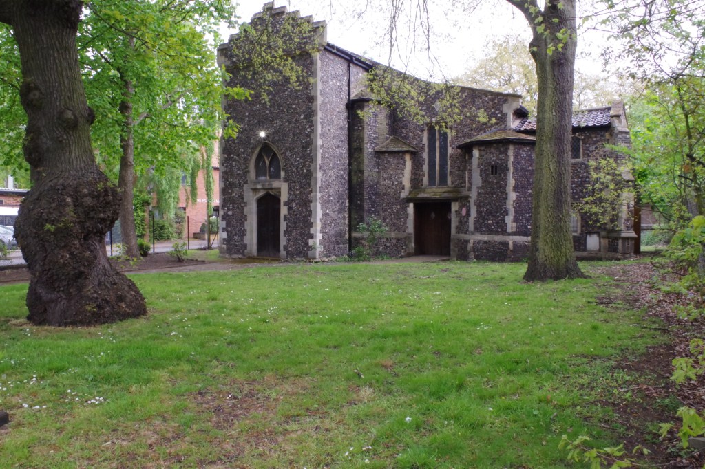 The round towered, cruciform, redundant, Church of St. Mary, Coslany is not open to the public but Simon Knott’s Norfolk Church website gives a glimpse inside.