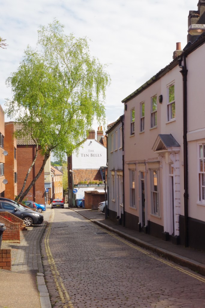 Continuing on Oak St. we pass the White Lion before crossing the Inner Ring Road and the start of the Marriott’s Way .