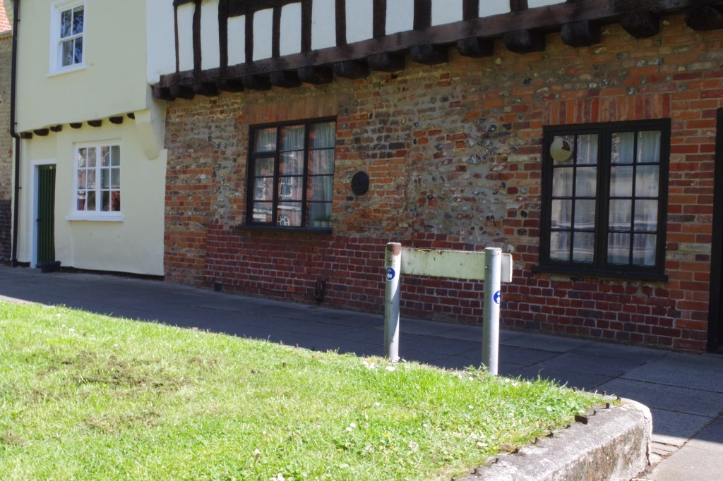 iii) On the road together, pilgrims head north down St.Miles’ Alley and Rosemary Lane to enter St. Mary’s Plain by Pykerell’s House: saved from slum clearance and fire bombs in the 20th Century, this 15th century hall house is a rare survival from earlier times. Once the home of a rich merchant it may have had a previous life as a pilgrims hostal. Pykerell’s House was also known as Pilgrims’ Hall. In 19th Century it was the Rosemary Tavern.