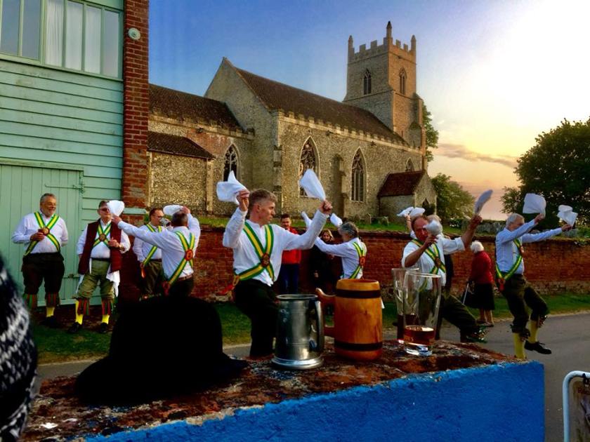 Those who wish to visit the village of Lyng, with a church, pub and a general store must turn aside from the route. The main route takes us to Elsing where St. Mary’s Church and the Mermaid pub both deserve a visit from those thirsting after righteousness. St. Mary’s has a beautiful, but faded, rood screen with an image of St. Ann teaching her young daughter to read .