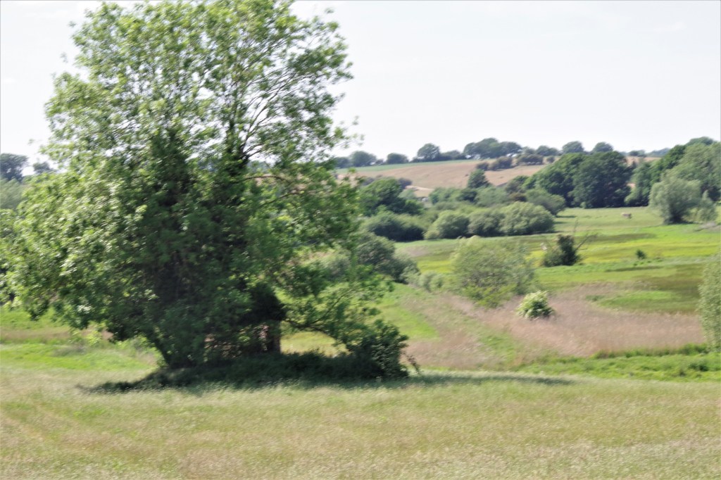 Past Weston we continue towards Lyng and Elsing. At Easthaugh, overlooking the verdant valley, a clump of trees marks the site of a pre-conquest church and convent named after the martyr king, St. Edmund. It has a fascinating history. A short detour leads through the woods to the mysterious King’s Stone.