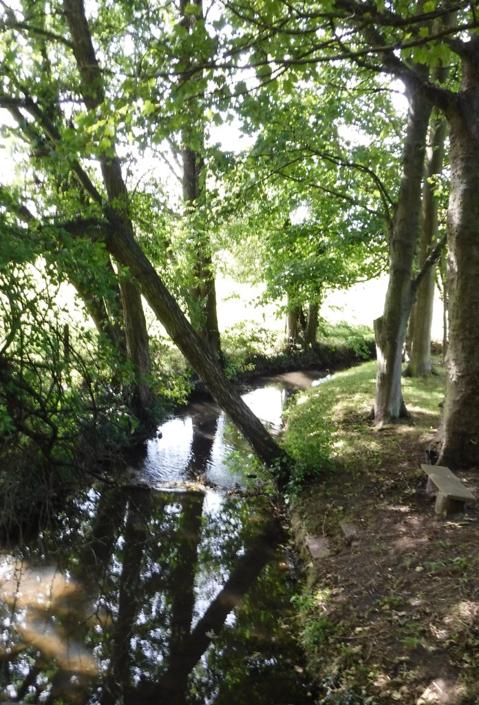 We remain in the River Wensum catchment area until we reach Fulmodeston. At Little Snoring we have crossed the watershed. Water in the ditch at the foot of St. Andrew’s churchyard eventually flows into the River Stiffkey. We cross the River Stiffkey at Great Snoring and once again as we come into Walsingham. Unlike the muddy ditch at Little Snoring, the river at Walsingham is bright, crystal clear and full of life! Thanks, to dedicated work of the Norfolk Rivers Trust.