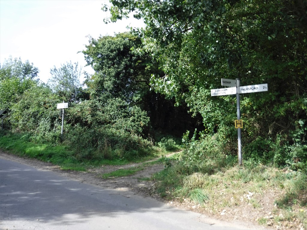 On leaving Great Snoring on the Barsham Road, pilgrims heading directly for the centre of Walsingham turn right onto the Greenway, parting company with those intending to visit the Slipper Chapel on the way. Details of the two routes are set out Arriving at Walsingham and Great Snoring to Walsingham via the Slipper Chapel pages.